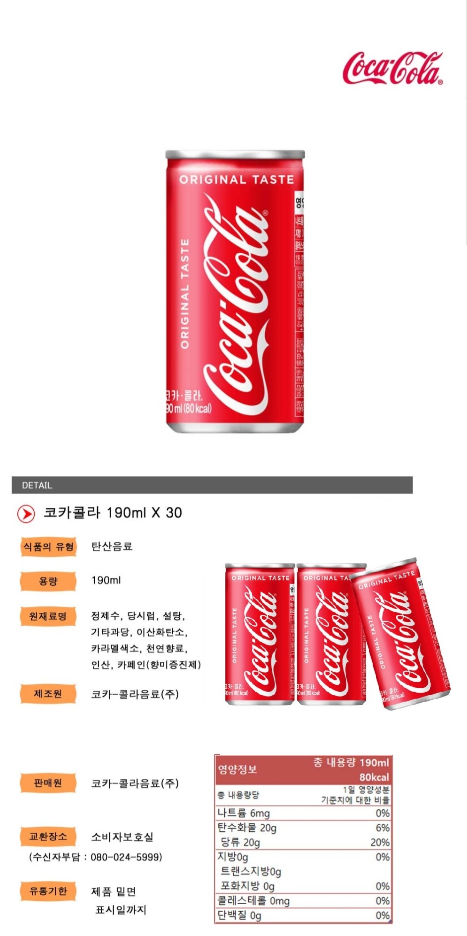 »óǰ¸í [ÄÚÄ«Äݶó] ¾÷¼Ò¿ë 190ml *30°³